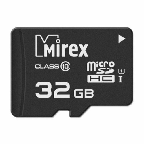 Карта памяти Mirex microSDHC 32 ГБ Class 10, UHS-I, R/W 25/10 МБ/с, адаптер на SD, 1 шт.