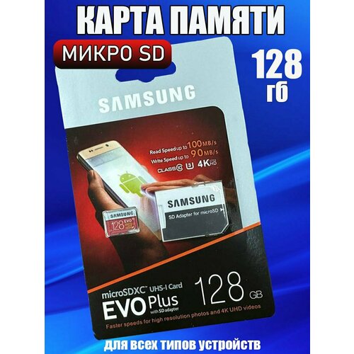 Карта памяти Microsd Class 10 Evo Plus 128gb с адаптером