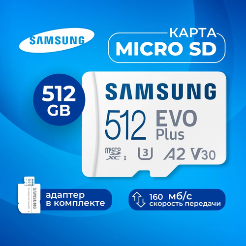 Карта памяти MicroSDXC Samsung Pro Plus 512 Gb 180/130 МБ
