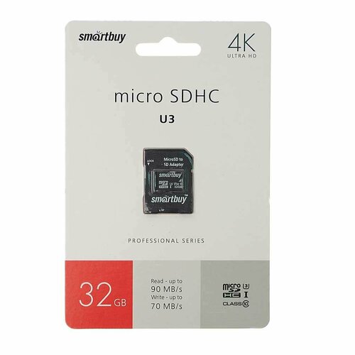 Карта памяти 32GB MicroSD class 10 + SD адаптер, SB32GBSDCL10U3-01, SMART BUY
