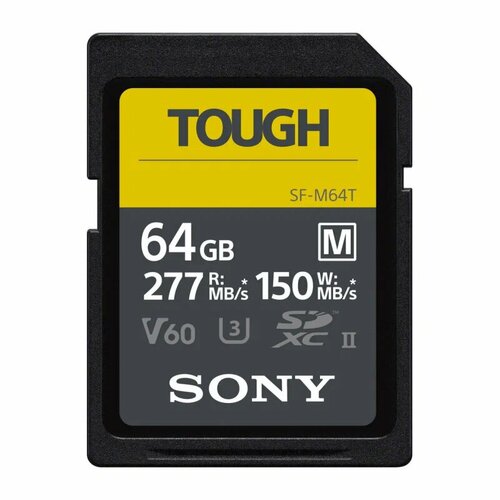 Карта памяти Sony SDXC 64 ГБ Class 10, V90, UHS-II U3, R/W 300/299 МБ/с, чёрный