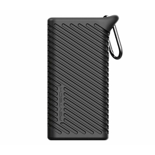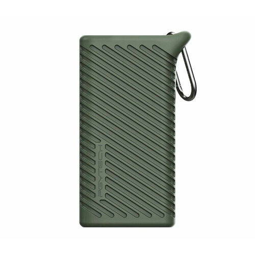 Корпус устройства выполнен из алюминия, по размерам он удобно ложится в руку. Для дополнительной защиты используется съемная оболочка из толстого слоя силикона с металлическим карабином, который можно пристегнуть к рюкзаку или сумке. Класс защиты IP54: устройство защищено от пыли и брызг (капель), падающих под любым углом, однако не защищено от струй воды и погружения в воду. Силиконовую часть можно полностью снять, тогда вместо брутального кейса в