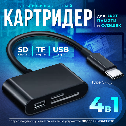 Картридер универсальный 4 в 1 USB Type C Micro USB, устройство для чтения SD-карт памяти, U-диск, OTG адаптер, конвертер для планшетов