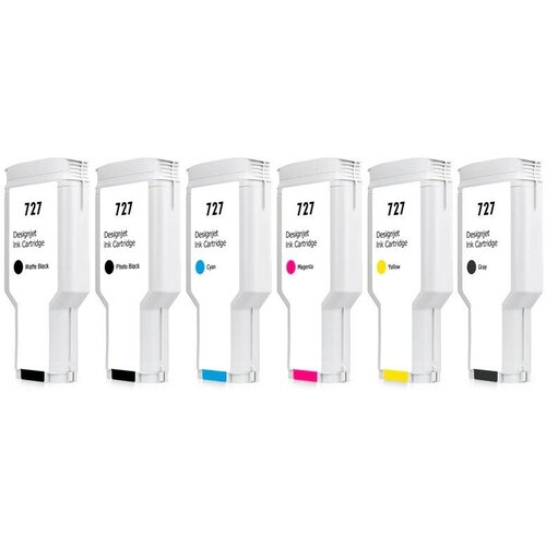 Картриджи для HP DesignJet T920, T2530, T2500, T930, T1500, T1530 (совм. HP 727), совместимые, комплект 6 цветов по 300 мл, im. H-727-300ml