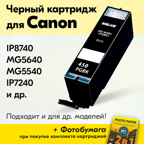 Картридж для Canon PGI-450Bk XL, Canon PIXMA MG5440, iP8740, MG5640, MG5540, iP7240, Черный (Black), увеличенный объем, заправляемый