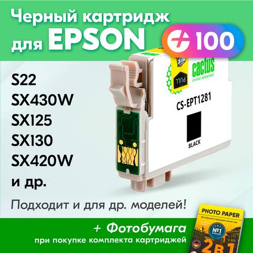 Картридж для Epson T1281, Epson Stylus Photo S22, SX430W, SX125, SX130, SX420W с чернилами (с краской) для струйного принтера, Черный (Black)