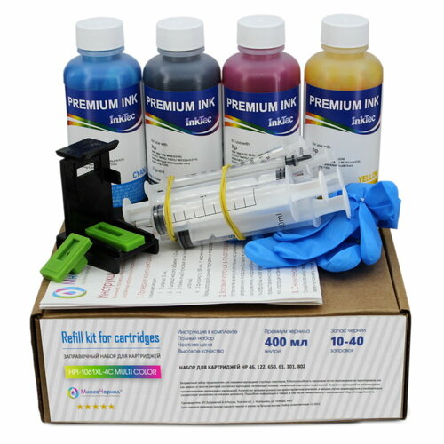 Заправка для HP Deskjet 1515, 2515, 3545, 4515, 2545, 3515, 1015, 3540, заправочный набор для чёрного и цветного картриджа HP 650, чернила 4 х 100 мл