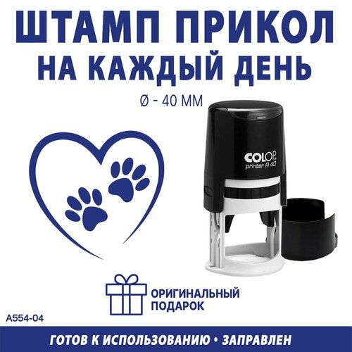 Печать подарочная "Сердце с лапками", автоматическая, 40 мм, синий оттиск