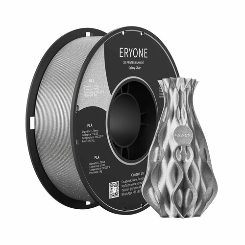 PLA пластик (филамент) для 3д принтера с блестками Eryone PLA GALAXY серебро 1,75 мм 1 кг