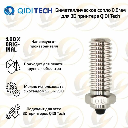 Оригинальное биметаллическое сопло 0.8 мм для 3D принтера QIDI Tech