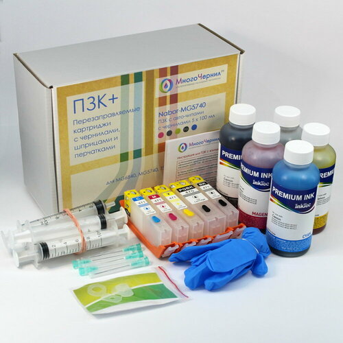 Набор перезаправляемых картриджей с чернилами InkTec для Canon PIXMA MG6840, MG5740, TS5040, TS6040 (PGI-470, CLI-471) чипы без отображения уровня чернил, Nabor-MG5740