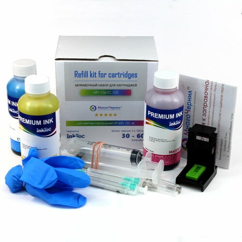 Заправка для HP Deskjet 1515, 2515, 3545, 4515, 2545, 3515, 1015, 3540, заправочный набор для чёрного и цветного картриджа HP 650, чернила 4 х 100 мл
