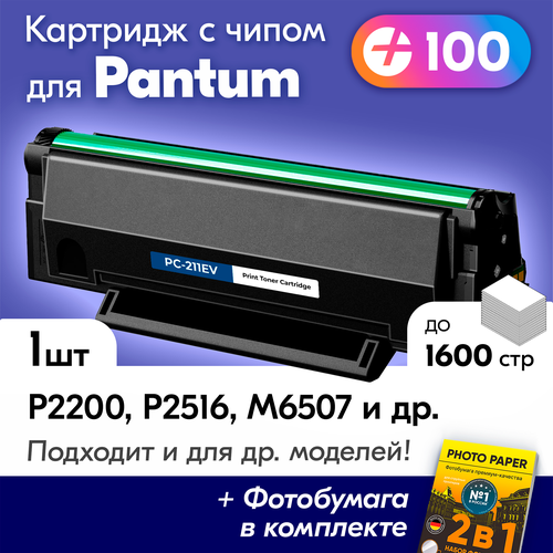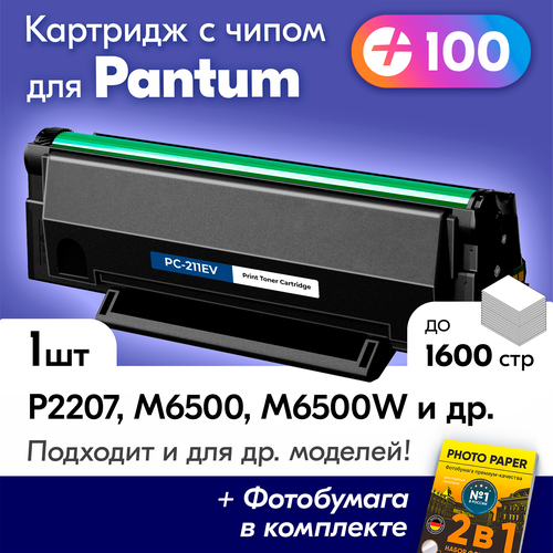 Лазерный картридж для Pantum PC-211EV, Pantum M6500, M6500W, M6507W, M6550NW, P2207 с краской (тонером) черный новый заправляемый, 1600 копий