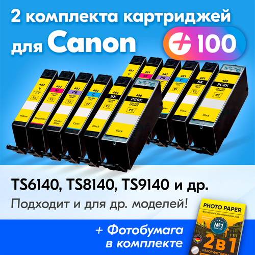 Картриджи для Canon PIXMA TS8340, TS9541C, TS9540, TS704, TS6240, TR8540, TR7540, TS6140, TS8140, TS8240 и др, с чернилами, Черный, Фото Черный, Голубой, Фото голубой, Пурпурный, Желтый, 12 шт.