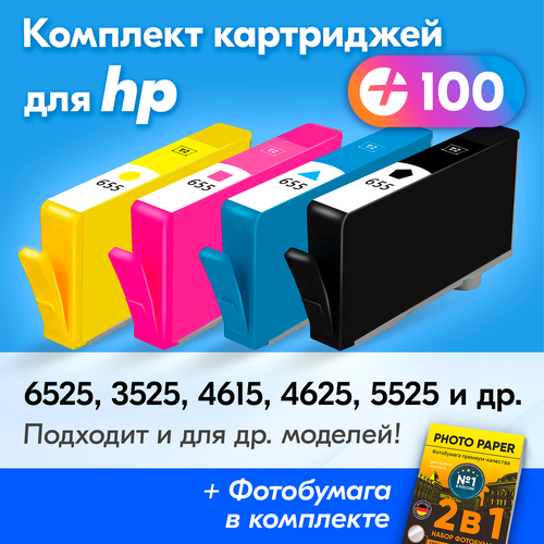 Картриджи для HP 655, HP Deskjet 3525, 4615, 4625, 5525, 6525 и др. с чернилами черный, голубой, пурпурный, желтый новые заправляемые, 4 шт.