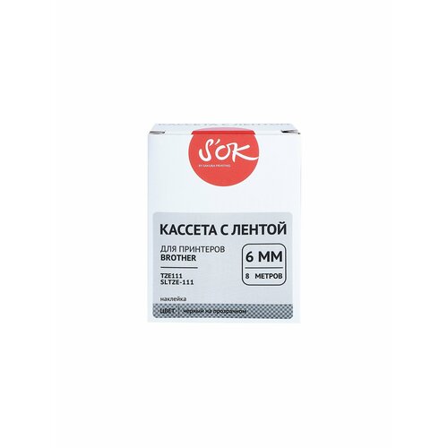 Кассета с лентой S'OK by Sakura Printing TZE111 для Brother, черный на прозрачном, 6мм/8м, наклейка