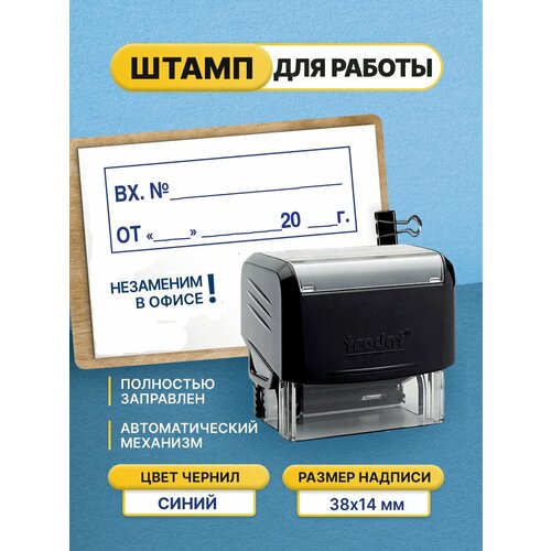 Штамп офисный "Входящий № от", автоматическая оснастка, синий, 38х14мм