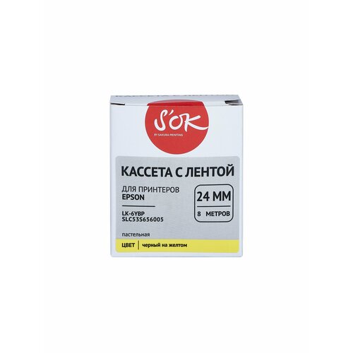 Кассета с лентой S'OK by Sakura Printing C53S656005 (LK-6YBP) для Epson, черный на желтом, 24мм/8м, пастельная