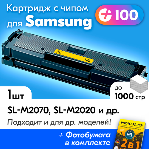 Лазерный картридж для Samsung MLT-D111S, Samsung Xpress SL-M2070, SL-M2020, SL-M2070w, SL-M2020w, SL-M2021, SL-M2022, SL-M2070fw, SL-M2071, SL-M2021w, SL-M2022w, SL-M2070f, SL-M2071f и др, с краской (тонером) черный новый заправляемый, 1000 к, с чипом