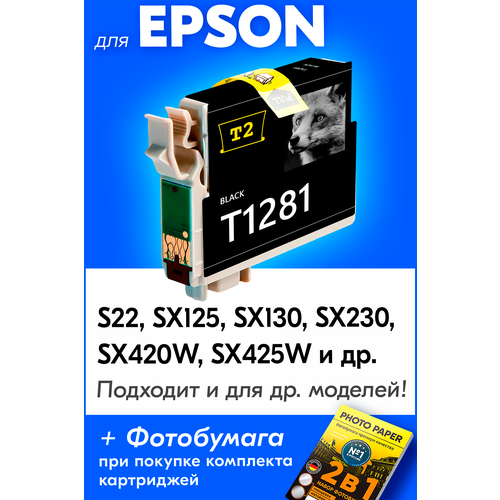 Картридж Epson T1281, для Epson Stylus Photo S22, SX125, SX130, SX230 , SX420W, SX425W и др. с чернилами черный новый заправляемый, 185 копий