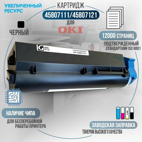Картридж 45807111/45807121, с чипом, совместимый, увеличенный ресурс, 12000 стр, для лазерного принтера Oki B432, MB492, B512, MB562