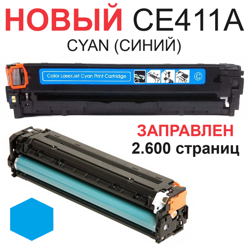 Картридж CE411A Cyan с чипом для HP LaserJet Pro 300 Color M351a M375nw Pro 400 Color M451dn M451dw M451nw M475dn M475dw - Цвет: синий (2.600 страниц) - UNITON