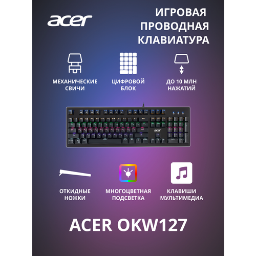 Клавиатура Acer OKW302 , игровая, механическая, LED-подсветка, USB
