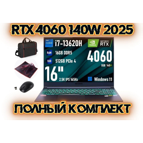 Игровой ноутбук Mechrevo Genesis G16 16" 2K 165Hz, i7-13620H, RTX 4060 8GB 140W, 16G/512GB, WIN11 + Сумка, Гарантия год