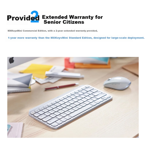 Logitech MX Keys Mini Wireless Bluetooth Keyboard, High-End Office Smart Backlit, with Receiver, Commercial Version, Light Grey