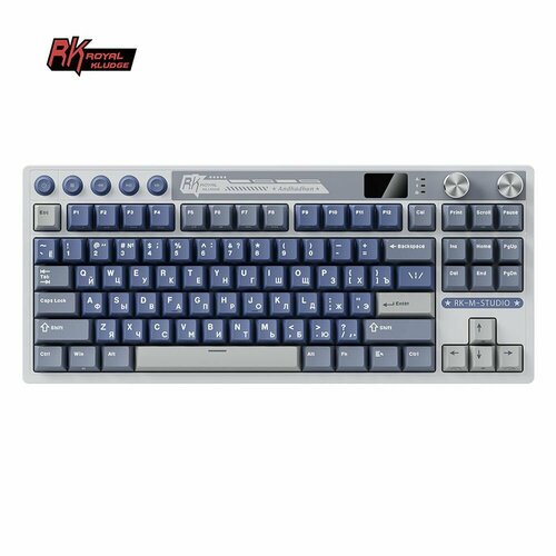 Классическая TKL (80%) механическая клавиатура Royal Kludge RK M87 - 3 типа подключения, 87 клавиш, Gasket Mount, профиль PBT Cherry, цвет Ocean Blue, переключатели RK Cream