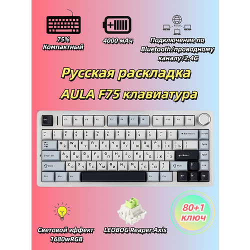 AULA Клавиатура F75 механическая беспроводная Bluetooth / 2,4 ГГц / USB -C Русский