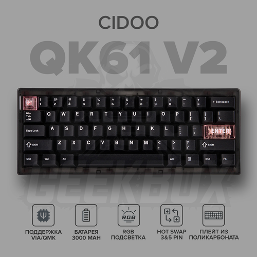 Беспроводная механическая клавиатура Cidoo QK61 V2 Black, 60%, Bluetooth 5.0, 2.4Ghz, USB Type-C, Английская раскладка