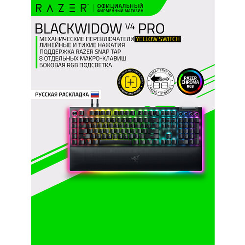 Клавиатура Razer BlackWidow V4 Pro, Yellow Switch (RZ03-04681800-R3M1) русские буквы
