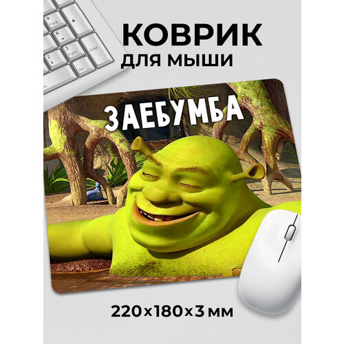 Коврик для мышки с приколом мем Шрек Заебумба Шрекси лежит в болоте