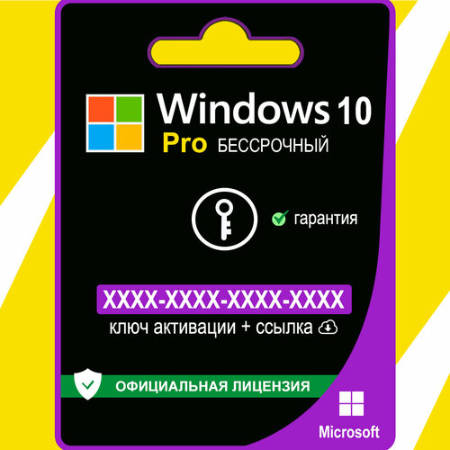 Ключ Microsoft Windows 10 Pro - бессрочная активация для 1 компьютера