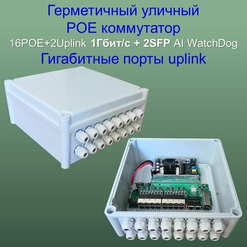 Уличный POE(свитч) 16POE+2Uplink 1000 Мбит/с, WatchDog, Бюджет 300 Ватт, switch IC REALTEK