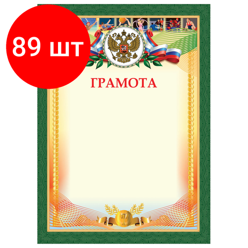 Комплект 89 шт, Грамота "Спортивная", А4, плотная мелованная бумага 200 г/м2, для лазерных принтеров, золотая, STAFF, 128901