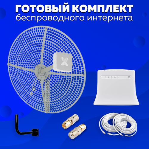 B7,B8,B20,B38,B40- WiFi Роутер ZBT 1626 OS Zyxel для покрытия Wi Fi по всему дому- Две кабельные сборки высокого качества по 10 метров- Два переходника TS9-F для подключения антенны к модему- Стеновой Кронштейн