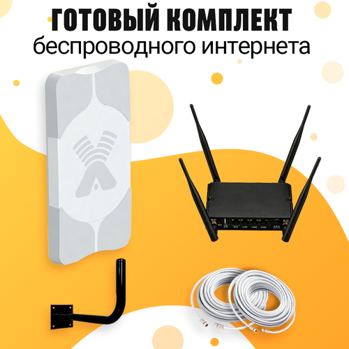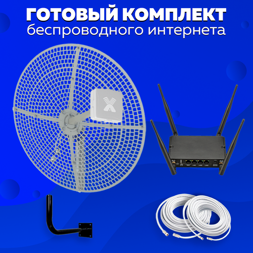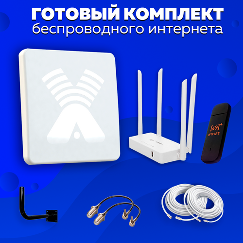 Характеристики комплекта:- Комплект Универсальный и работает со всеми операторами: МТС Теле2 Мегафон Билайн Ростелеком Тинькофф Летай Волна Феникс 7 Телеком Yota Wifire и другие.- Усиление внешней Антенны 20дб с приемом сигнала до 20Км от Базовой Станции оператора- Тип сети 4G Интернета LTE CAT4 со скорость
