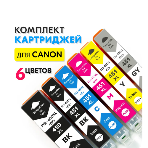 Комплект картриджей Inkmaster PGI-450/CLI-451 XL 6 цветов для Canon PIXMA-MG6340, MG7140, MG7540, iX6840, iP8740 и др.