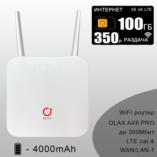 Комплект для интернета и раздачи, 150ГБ за 350р/мес, Wi-Fi роутер OLAX AX5 PRO + сим карта