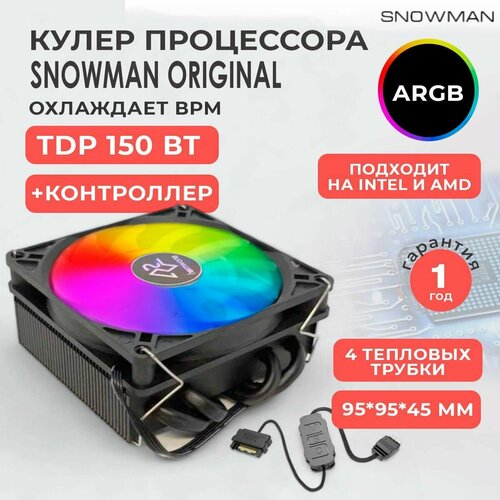 Кулер вентилятор башенный Snowman (Снеговик) M45-4 для процессора c АRGB подсветкой