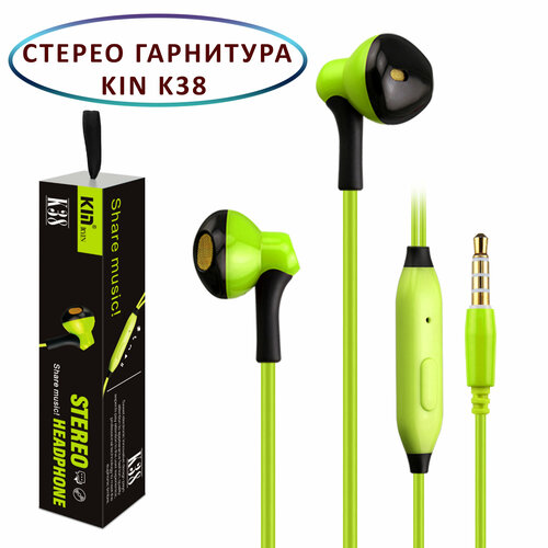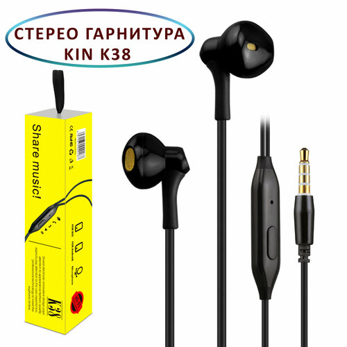Гарнитура (наушники с микрофоном) проводная KIN K38, цвет черный