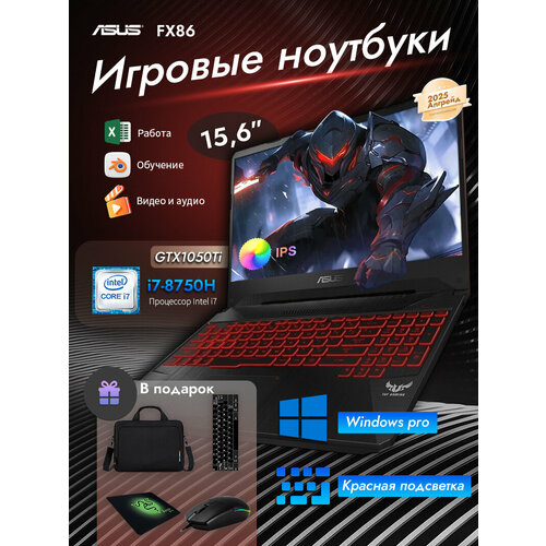 15,6″ Игровой рабочий ноутбук ASUS FX80G, Intel Core i7-8750H (2.2ГГц), 16Гб, SSD 1ТБ, GTX 1050Ti (4Гб), Windows 10 Pro