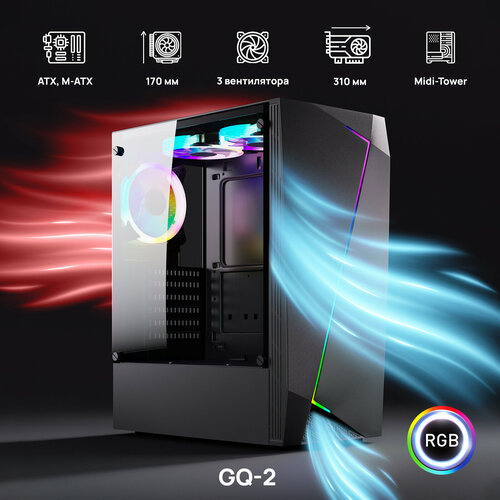 Компьютерный корпус ABR Gaming GQ-2 (3х120 мм RGB подсветка, 1* USB 3.0;2*2.0, HD Audio, Mic, Midi-Tower) без БП