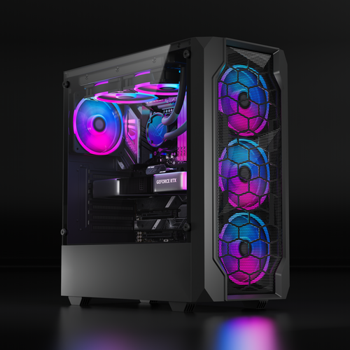 Игровой корпус для компьютера Prime Box AVENGER X1 Black + 7 ARGB вентиляторов + закаленное стекло