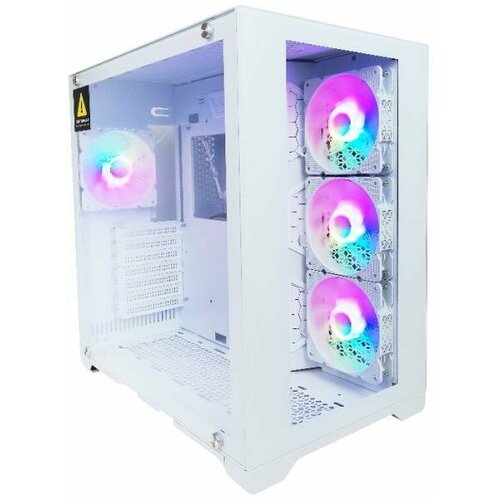Powercase Корпус ByteFlow Micro White, Tempered Glass, 4х 120mm ARGB fans, ARGB HUB, mATX CAMBFW-A4