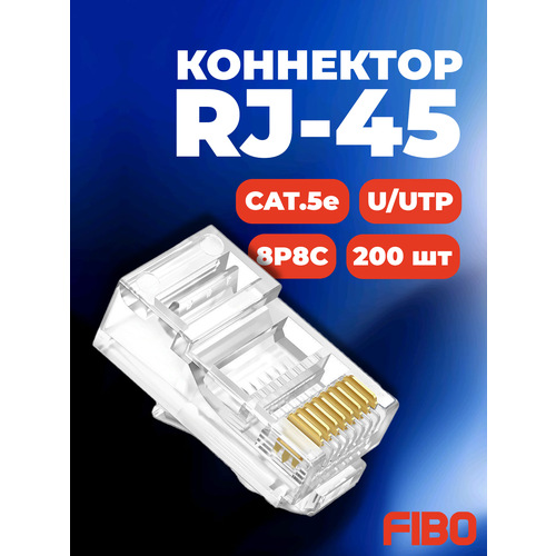 Коннектор RJ45 (8p8c), категория 5e, в упаковке 200 шт, прозрачный, 0,3мм - толщина пинов, неэкранированный (U/UTP)