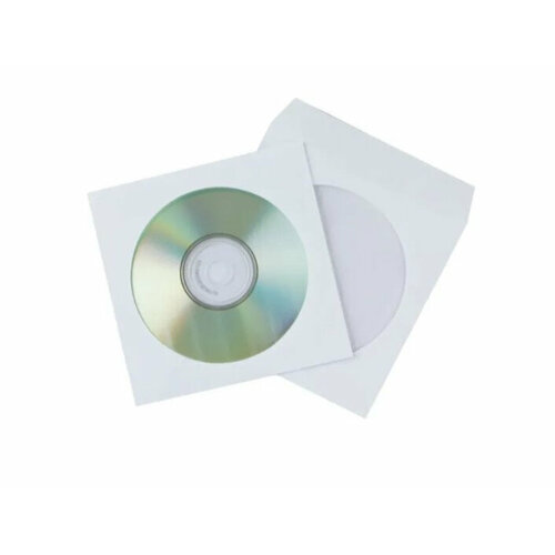 Конверт для CD дисков D2 Tech CDC-1-100, без окна, клей дискрин, 100 шт. белый