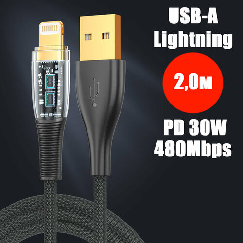 Кабель PALMEXX USB-A to Lightning, PD 30W, длина 2.0м, чёрный